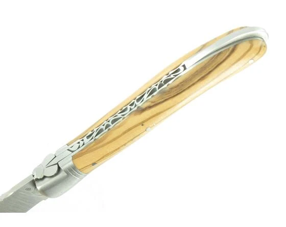 The Bee spring with its lock-back system is made from a 3mm thick stainless Steel Z20C13. A solid bladestop is provided on all of our springs, that shall keep a long time the edge of the blade. The traditional bee is solid, and forged into the spring. The spring and the bee are then hand-chased with a file.