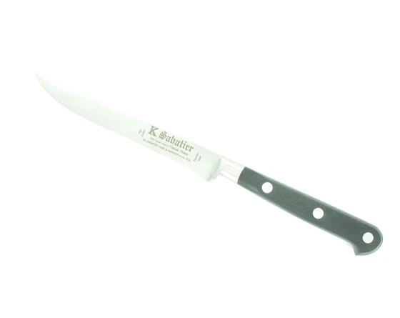 The whole knife is forged in a single mass ofstainless steel. The steel Z50C13, Rockwell 54-56 HRC, is tempered,ground and polished crosswise to produce a high-quality tool, greatcutting power, cutting hardness and balance.
