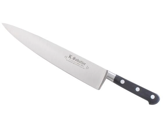 The whole Sabatier Knife is forged in a single mass of stainless steel. The steel Z50C13, Rockwell 54-56 HRC, is tempered, ground and polished crosswise to produce a high-quality tool, great cutting power, cutting hardness and balance.