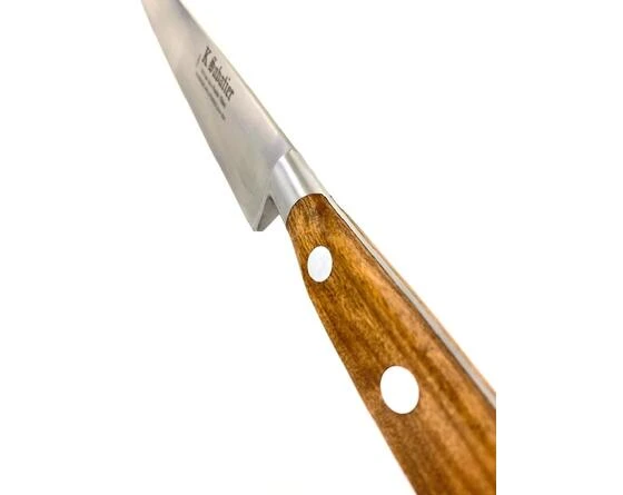 Important point for olive wood handles: it is a natural wood. Do not wet the wood or leave it damp in order to keep a nice handle.