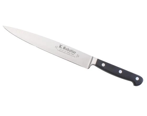 The whole knife is forged in a single mass of stainless steel. The steel Z50C13, Rockwell 54-56 HRC, is tempered, ground and polished crosswise to produce a high-quality tool, great cutting power, cutting hardness and balance.