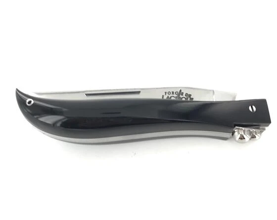 Each knife takes several hours or even days to manufacture. Over 40 successive steps are needed to realize one. The quality of the finish, the strength of the blade and the spring, the thickness of the bolsters and plates, as well as the accuracy of the calibration are the elements that contribute to its longevity. Forge de Laguiole integrates all these manufacturing steps. The blades are forged and tempered on-site at Laguiole. Each model is assembled and shaped by the same cutler: One man, one knife. The shape of the knife must respect the general outline determined by the cutlers of the nineteenth century. Today that view inspires many designers. Forge de Laguiole manufacture offers several types of forged steels to satisfy lovers of traditional patterns and those of more modern knives. Carbon steel is the oldest. Appreciated by collectors, it retains great cutting ability as it wears down slowly and changes color over the years. The new T12 stainless steel was designed specifically for the Forge and holds its luster and edge superbly.